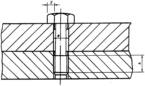 h≥緊固螺栓的螺紋外直徑 c≤ISO286-2的H13級允許最大間隙 圖1 螺紋緊固的公差和間隙 b) 細桿螺栓頭或螺帽下面的孔應攻絲,以保證螺栓不脫落。螺孔的尺寸應保證與被連接件的接觸面積至少等于非細桿螺栓在光孔中的接觸面積(見圖2)。
